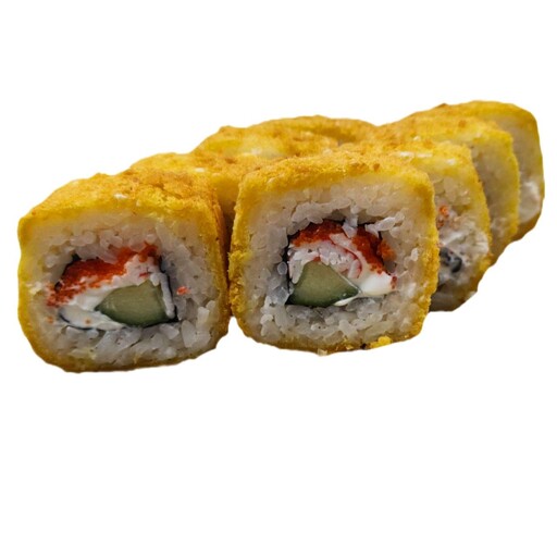 жаренный ролл,в хрустящей корочке с сочной креветкой и огурчиком. в дополнение идет ореховый соус (15мл) Нори, суши-рис, креветка, огурец, кляр темпура, сухари панко 6шт. в ролле