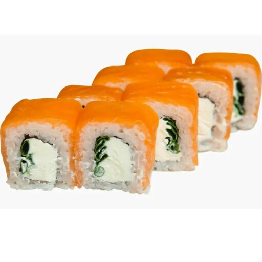 Суши-рис, нори, сфр Креметто, снежный краб, лосось, огурец